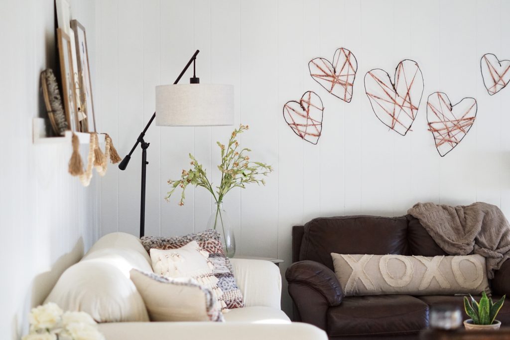 Neutral Valentines Living Room + DIY Rustic Hearts